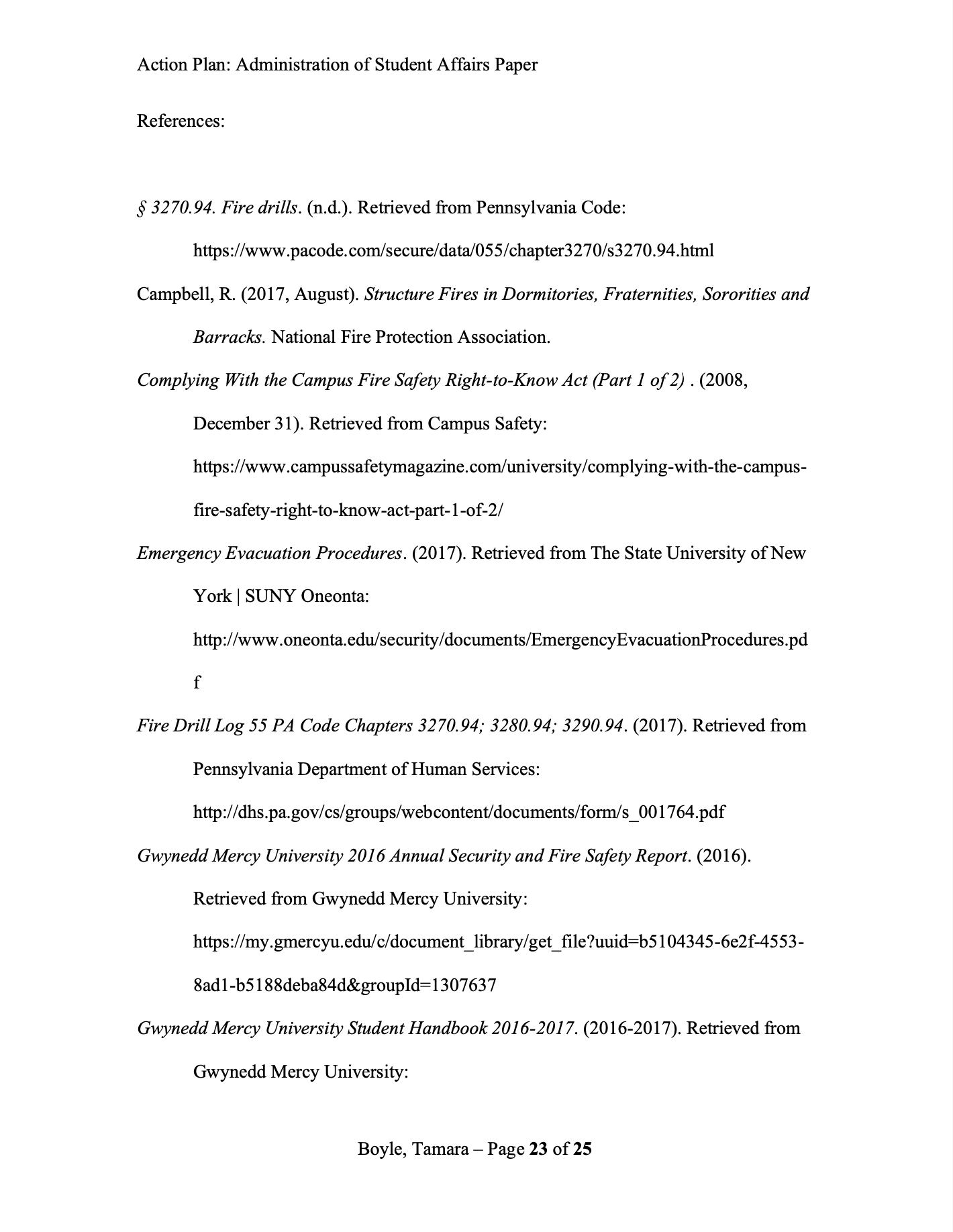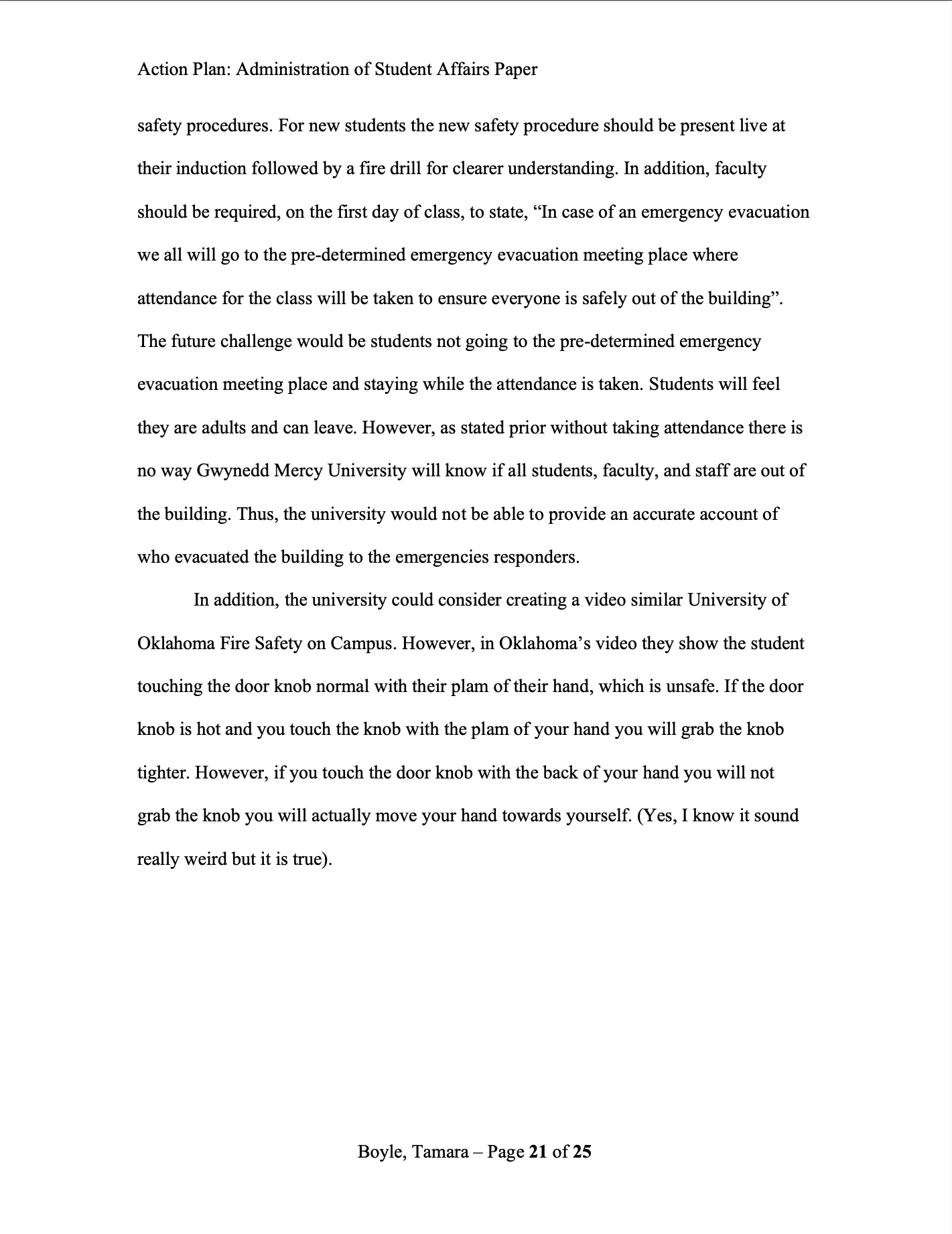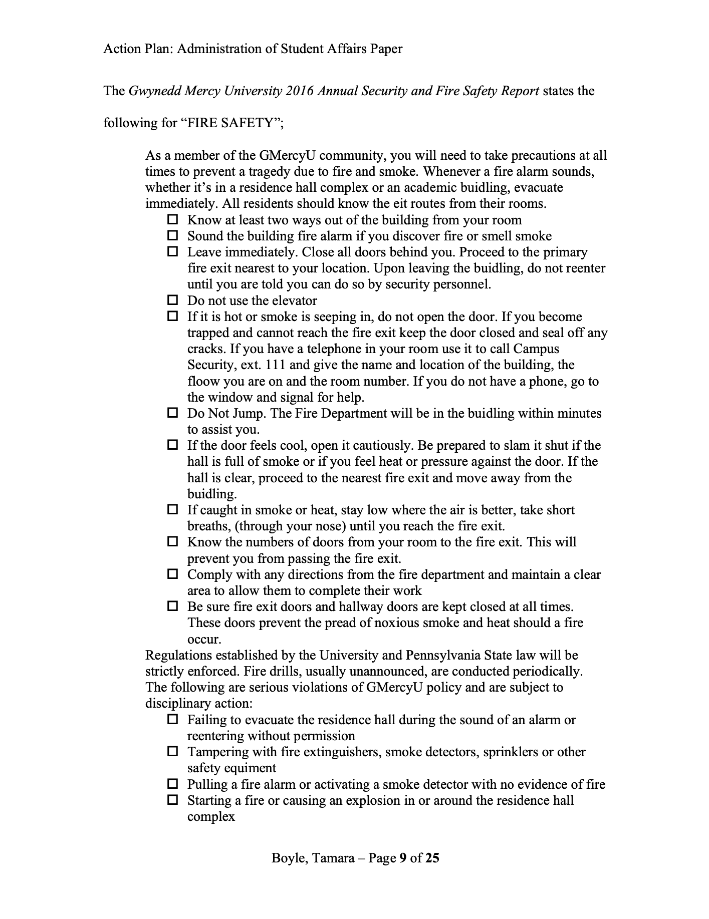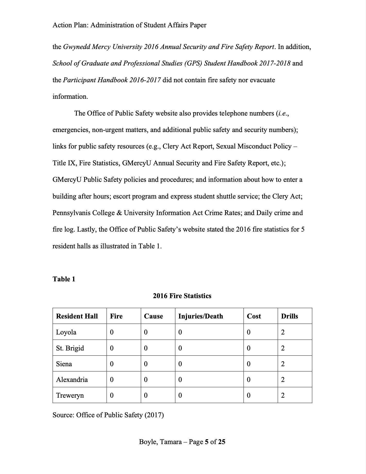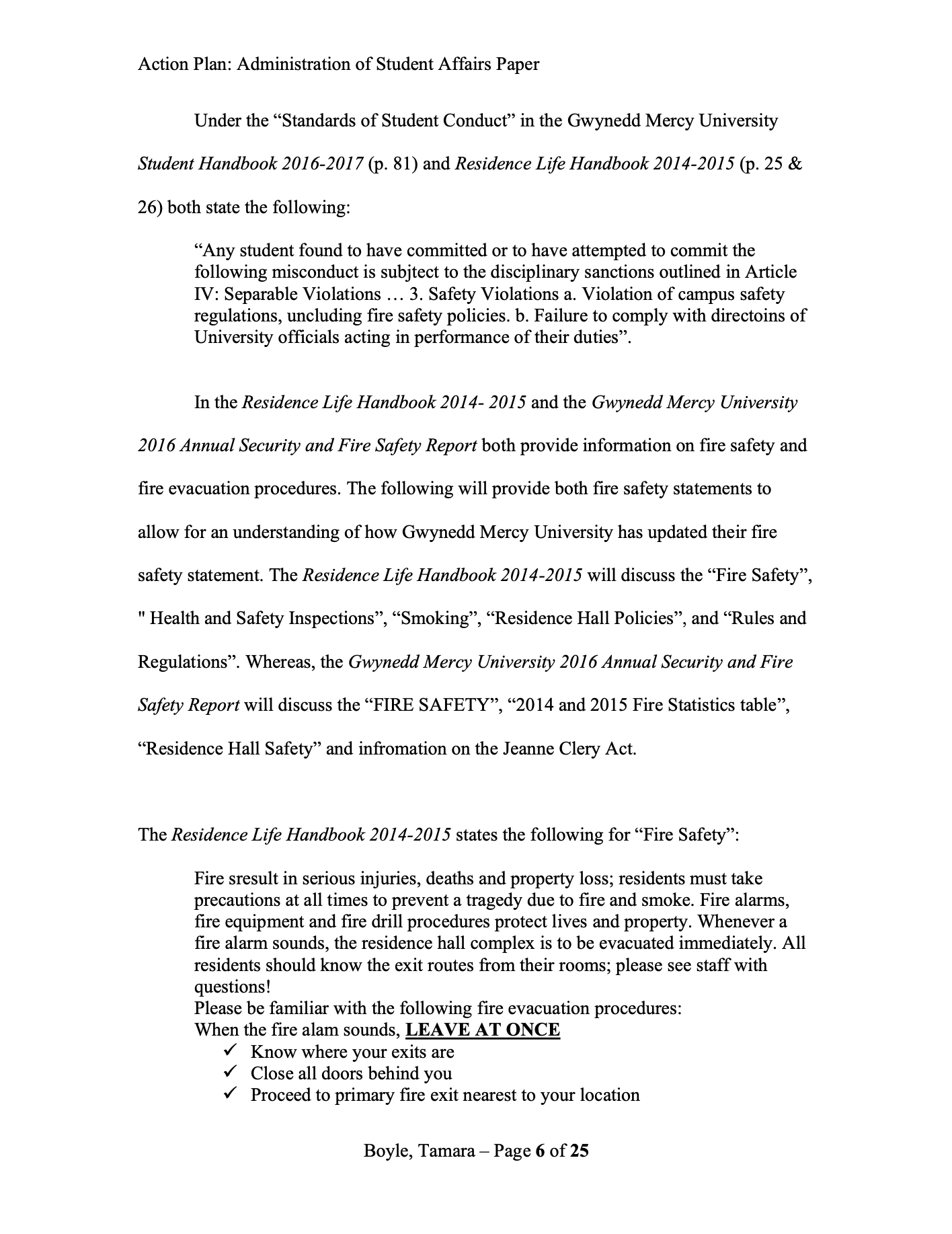 Boyle, T.B. (2017) Fire Safety Procedures Action Plan Administration of Student Affairs Paper