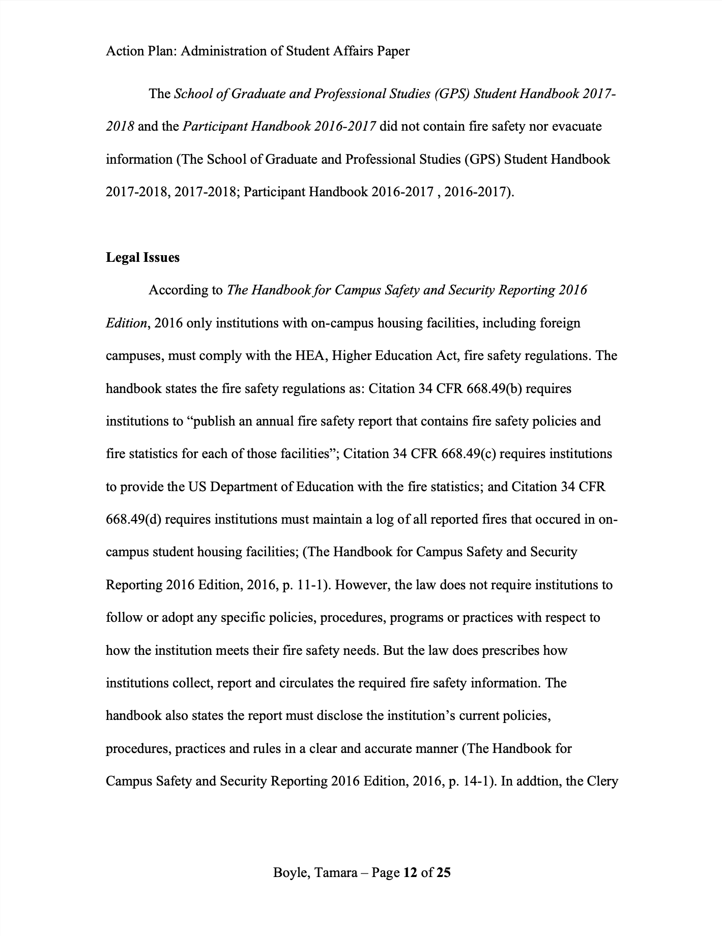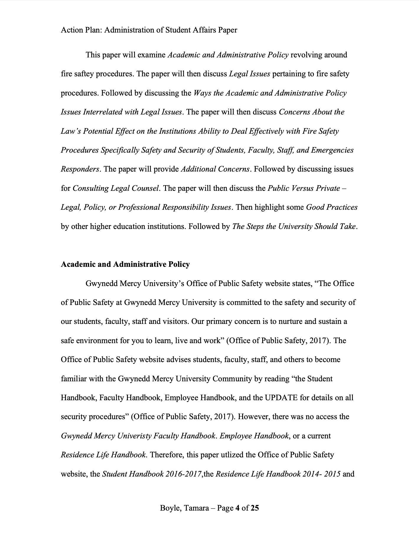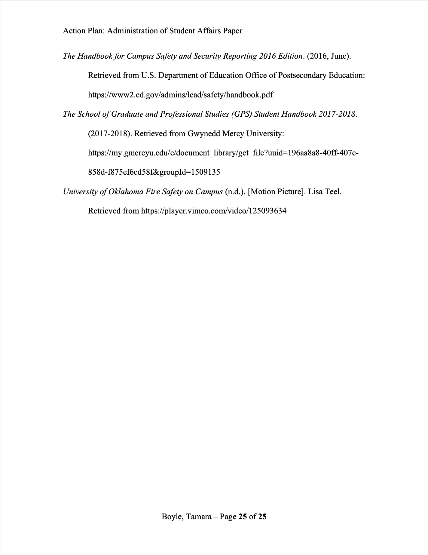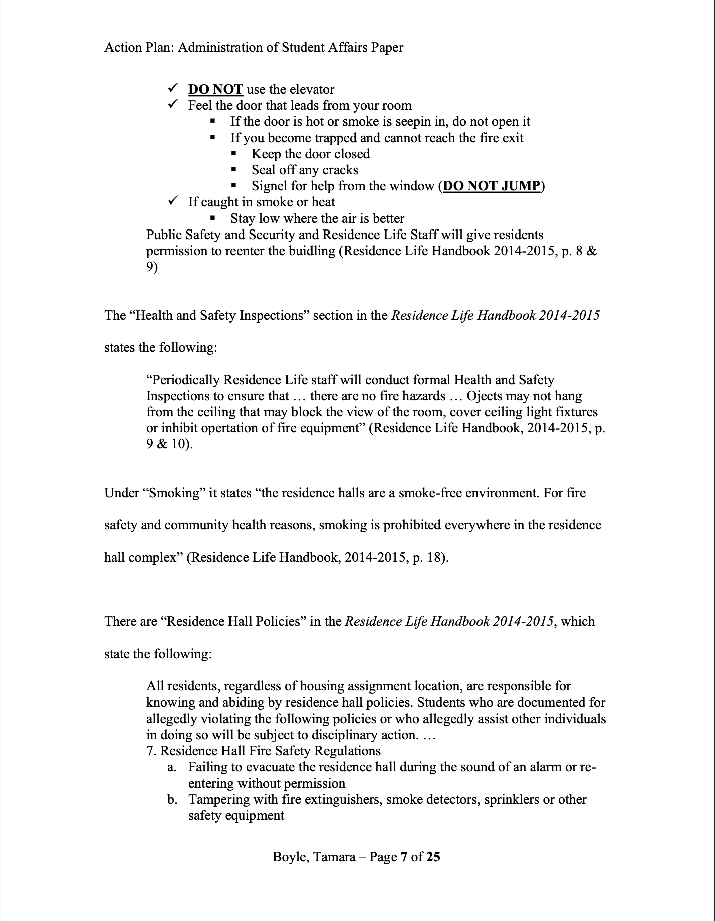 Boyle, T.B. (2017) Fire Safety Procedures Action Plan Administration of Student Affairs Paper