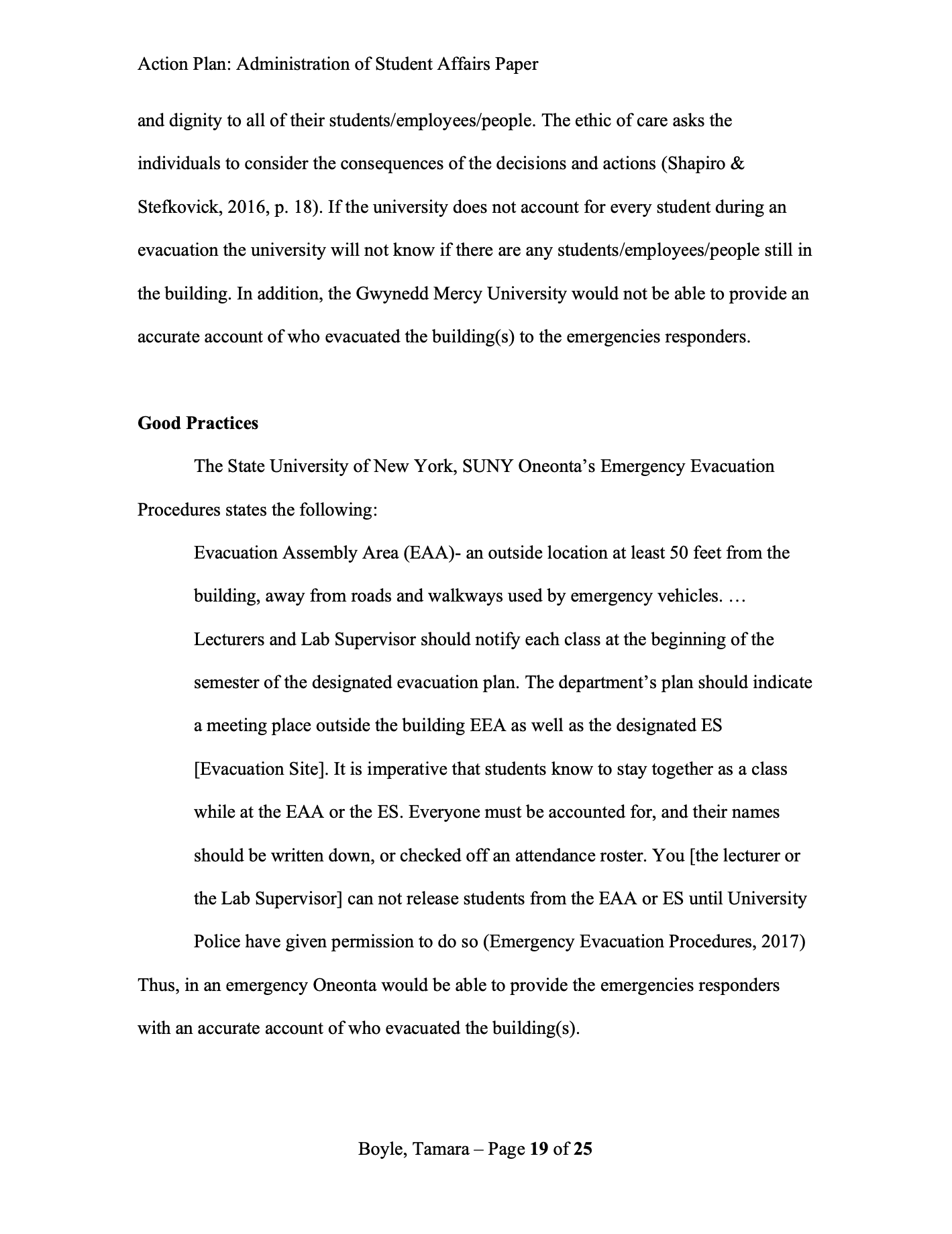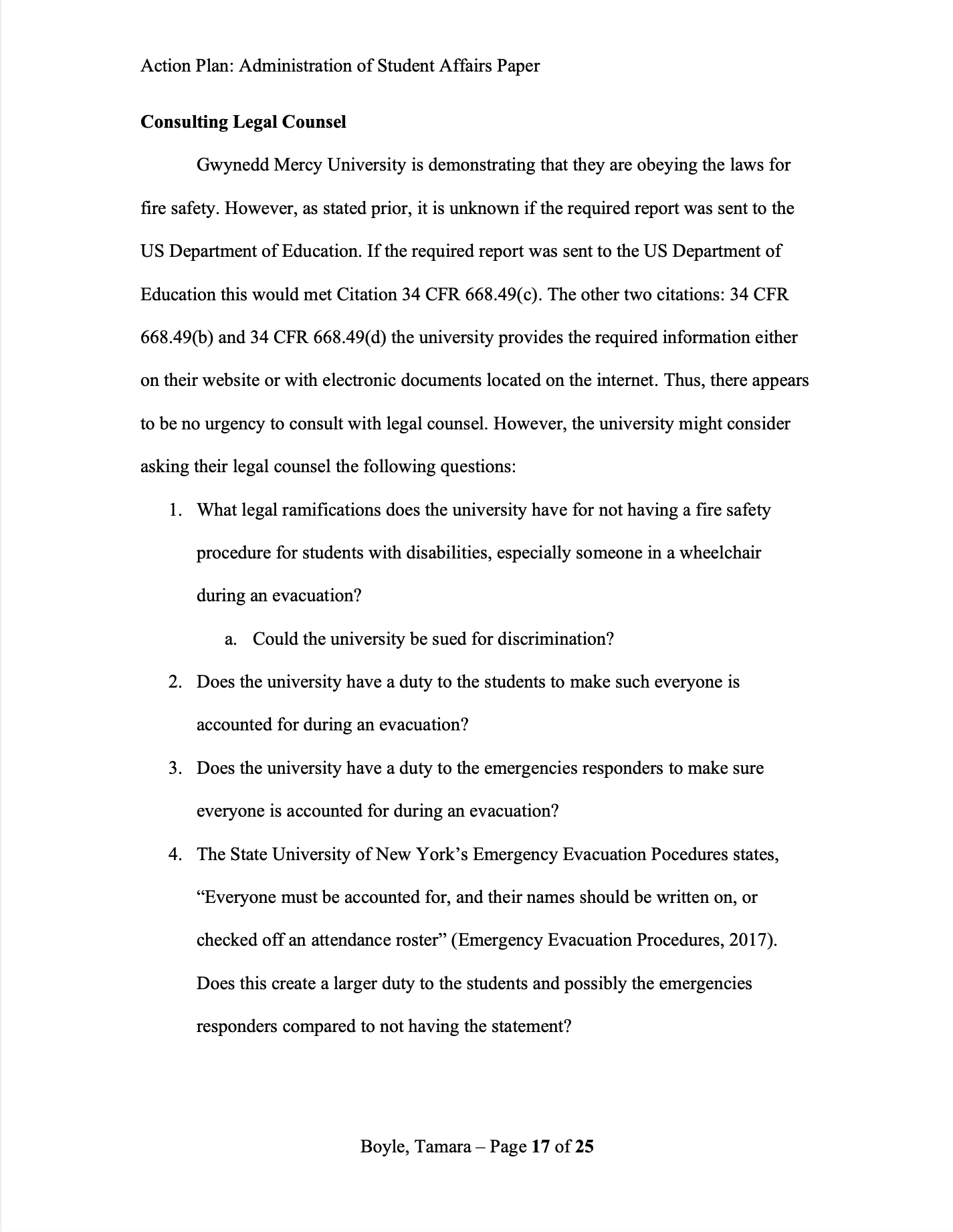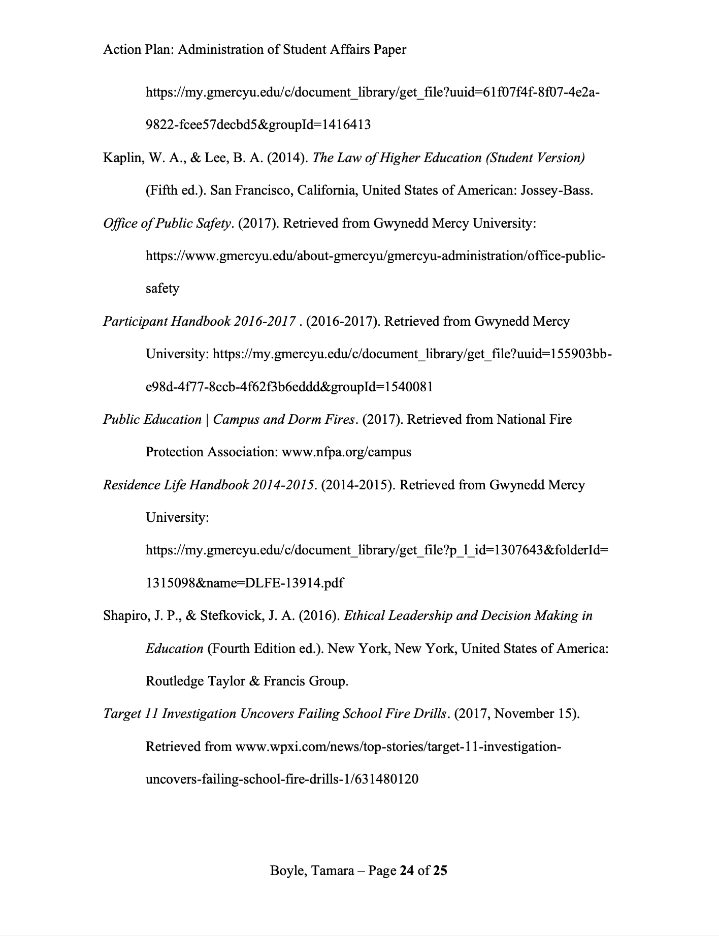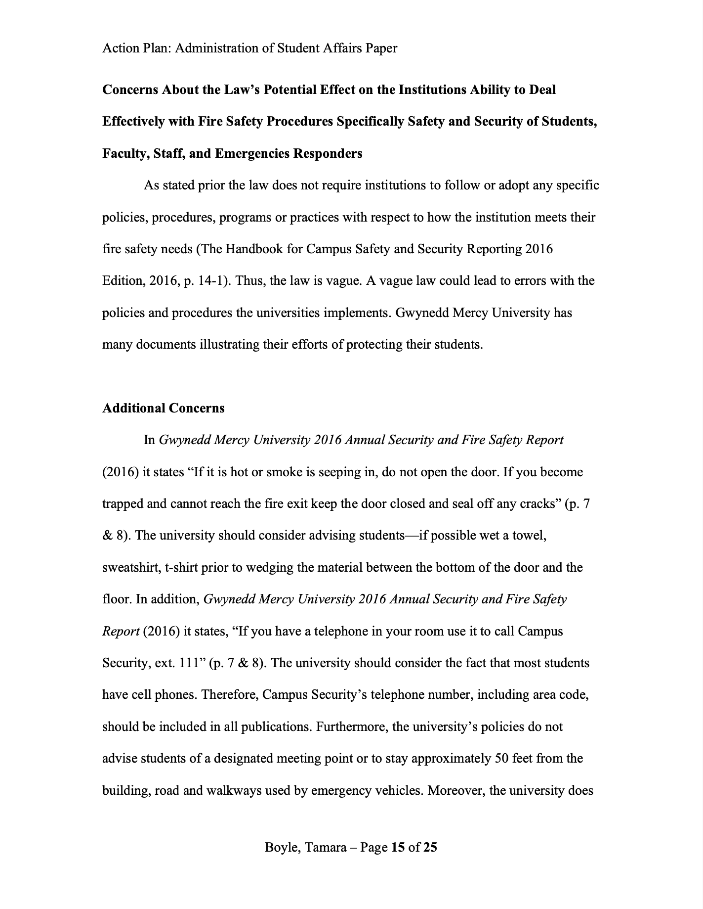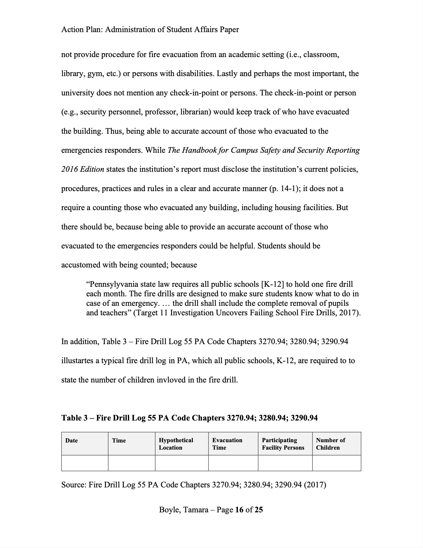Boyle, T.B. (2017) Fire Safety Procedures Action Plan Administration of Student Affairs Paper