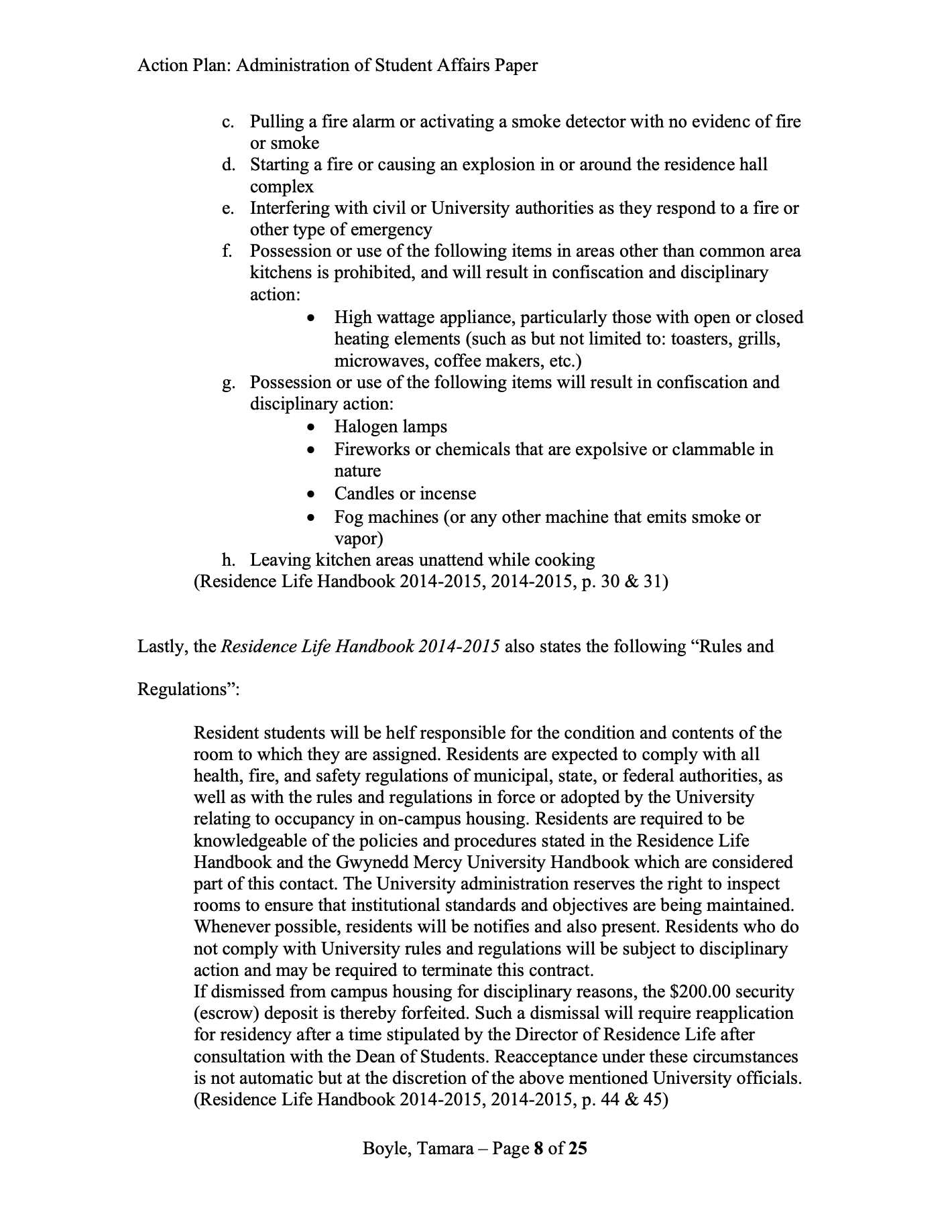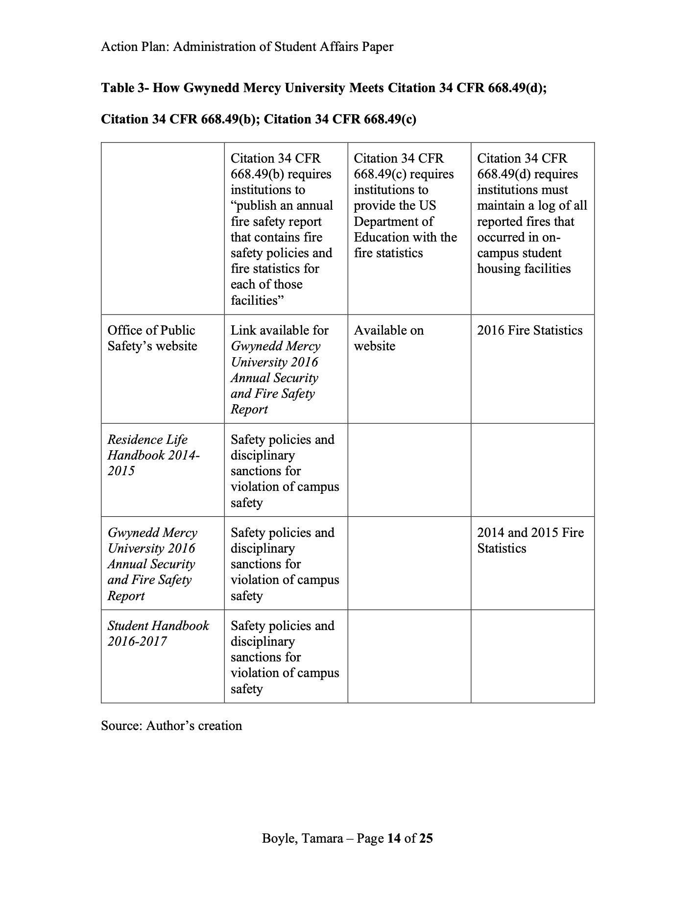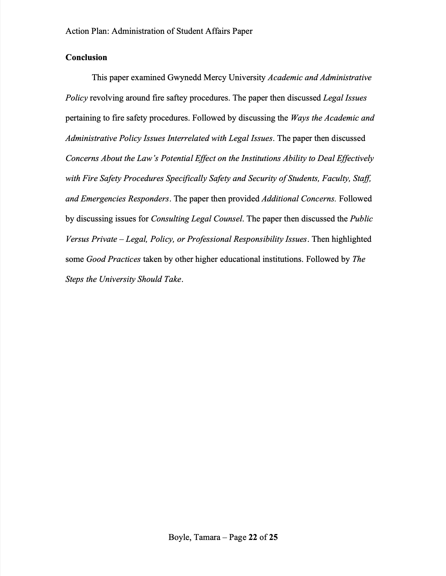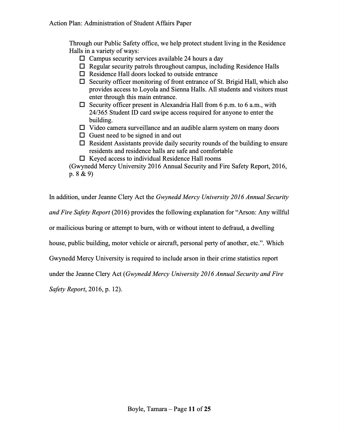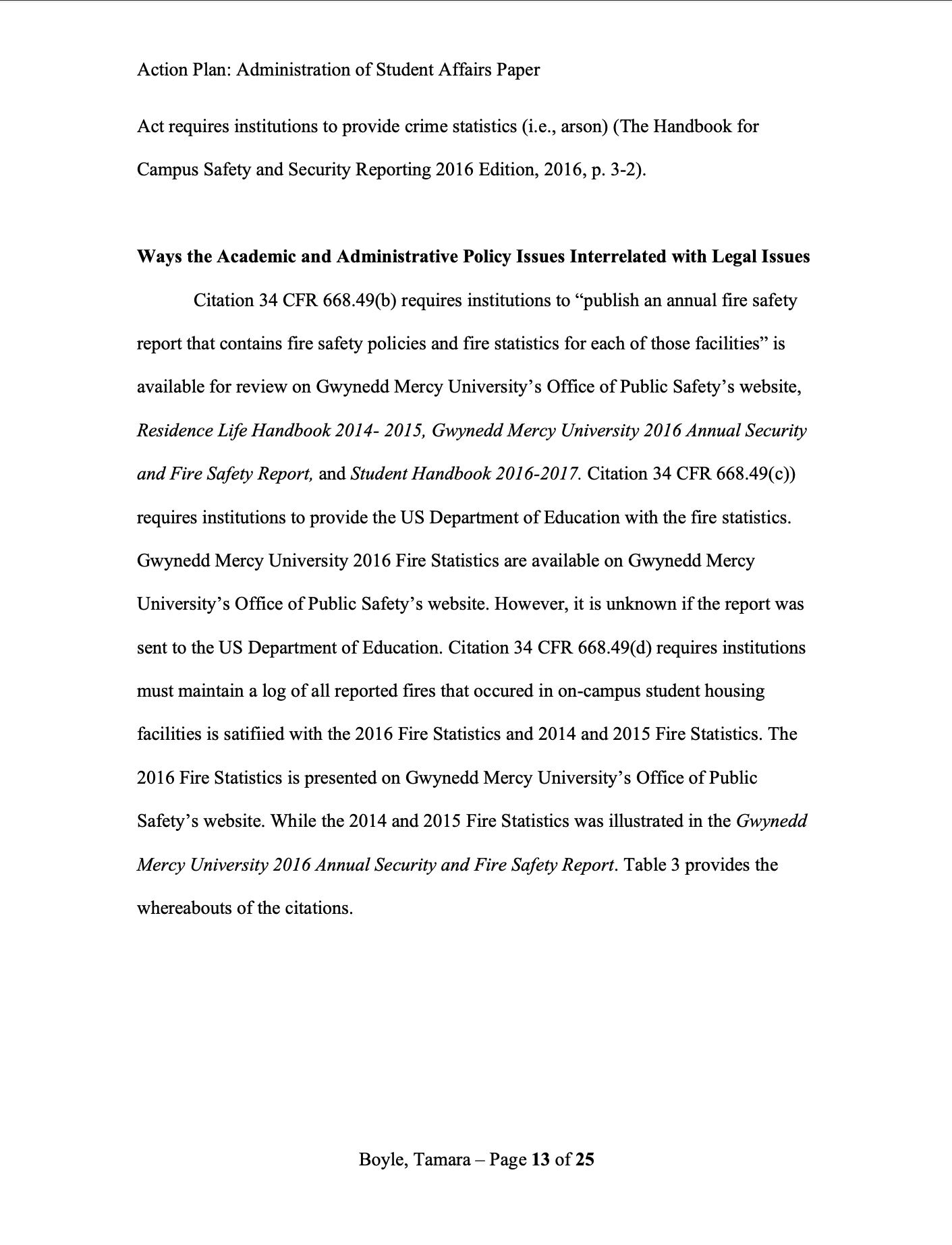 Boyle, T.B. (2017) Fire Safety Procedures Action Plan Administration of Student Affairs Paper