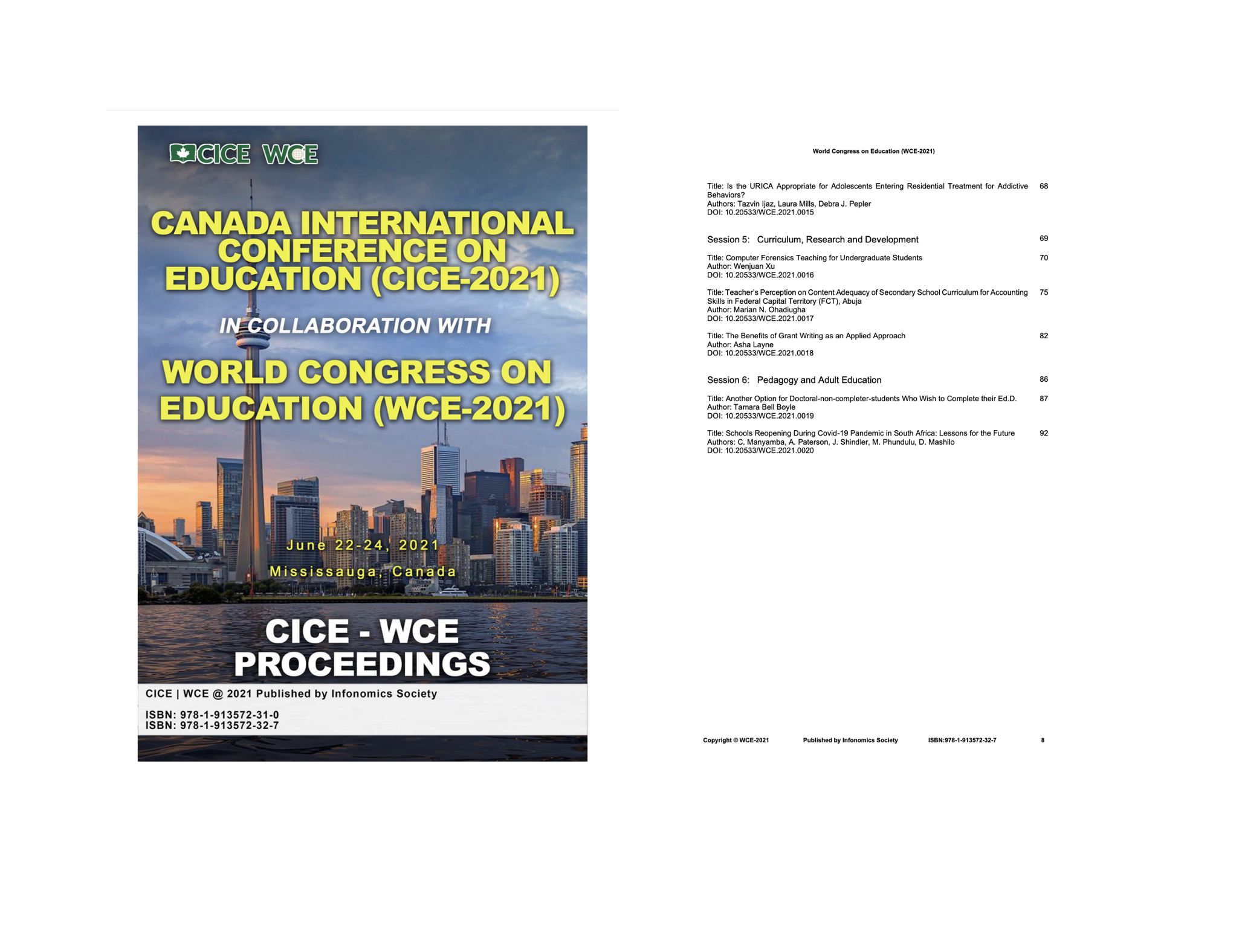 Boyle, T. (2021). Another Option for Doctoral-non-completer-students Who Wish to Complete their Ed.D. World Congress on Education. Toronto. Retrieved from https://www.linkedin.com/in/tamarabellboyle/overlay/Position/2138056126/treasury/?profileId=ACoAAAZxGAEBEWo7wmfWx7LPH_6NAVRQpT62j20